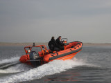 De volledig planerende diepe V-romp, voorzien van sprayrails en een 40° reverse chine, garandeert een droge en stabiele vaart onder alle omstandigheden. De romp van brandvertragend polyester vormt met het zelflozende dek één onverwoestbare eenheid. De boot wordt beschermd door ORCA Neoprene-Hypalon drijvers met vijf onafhankelijke luchtkamers voor maximale betrouwbaarheid en weerstand tegen chemicaliën, uv en slijtage. Ontworpen voor een bemanning van 4 en een totale capaciteit tot 12 personen, biedt de lay-out volledig situationeel bewustzijn. De achtergelegen console geeft de schipper maximaal overzicht, terwijl de 150 pk buitenboordmotor zorgt voor snelheden tot 30 knopen.